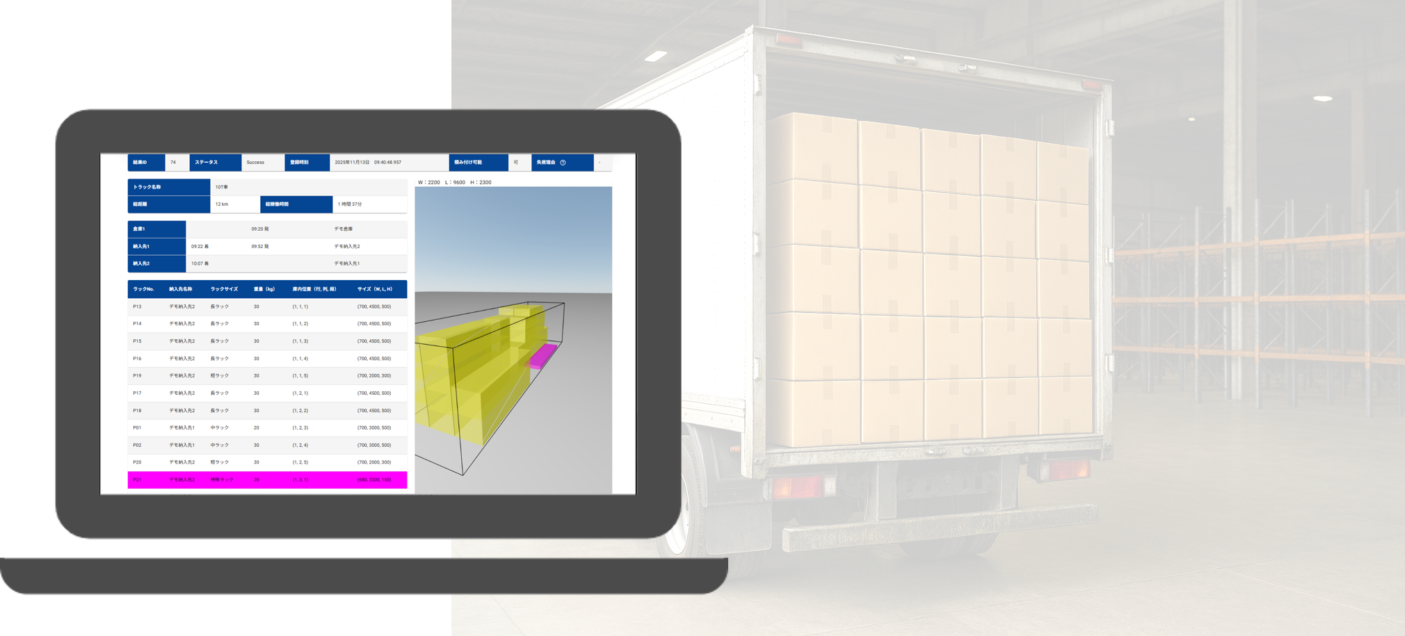 当社独自のノウハウを駆使して、荷物の積み付けレイアウトを計算します。