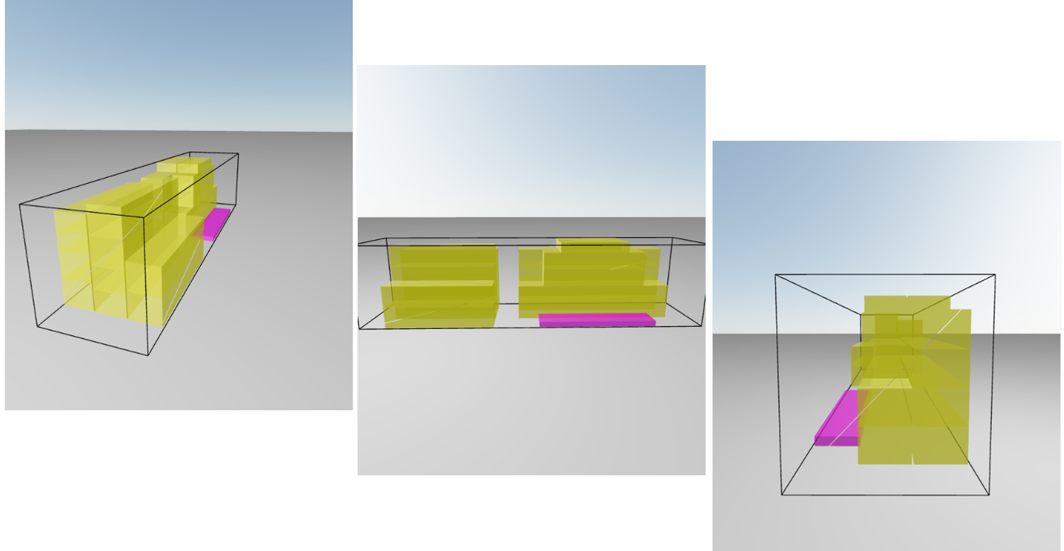 GeoPackingの3D結果画面では、 荷物の積み付けの様子を3Dで視覚的に分かりやすく表示します。